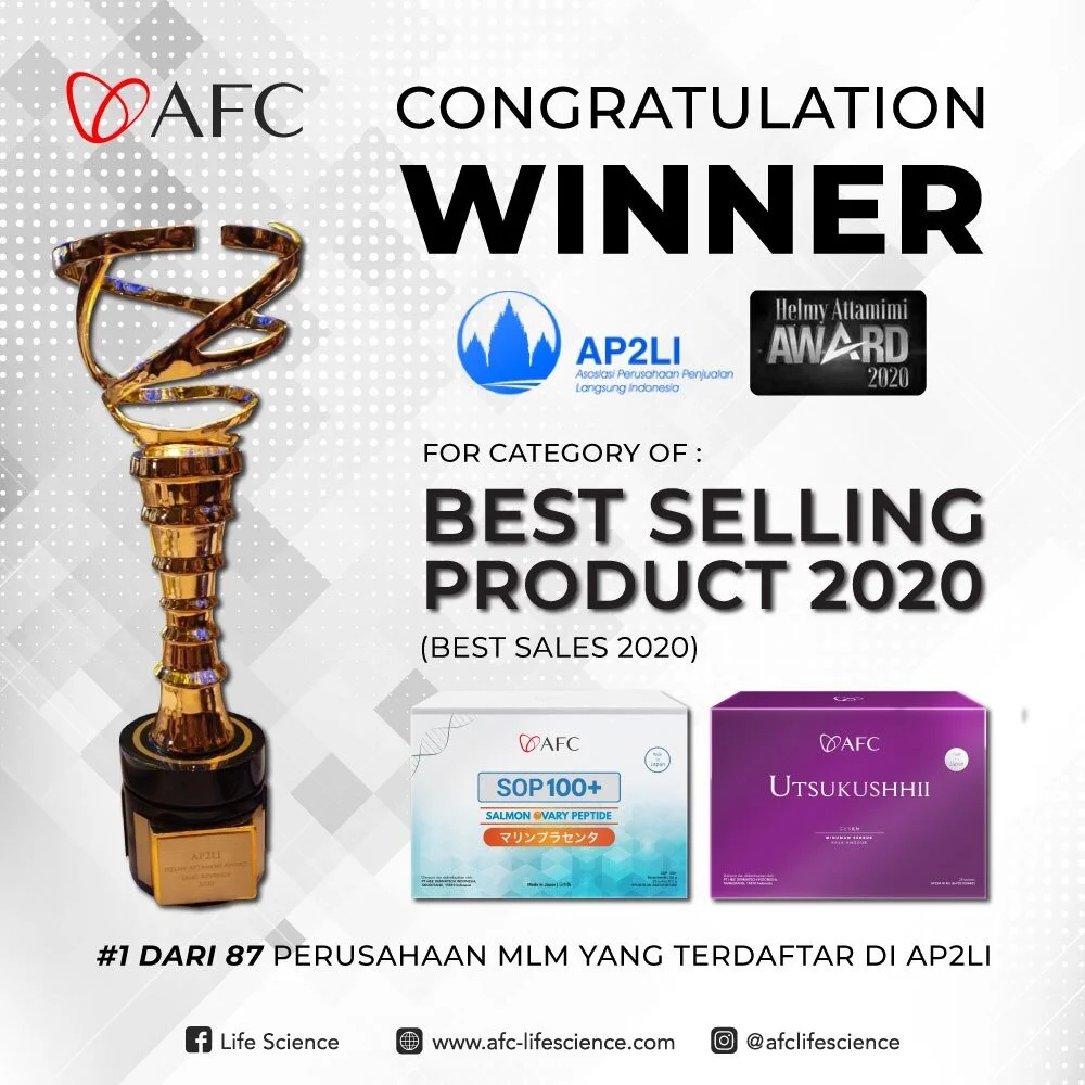 Dengan hard work dan team work kami, AFC Life Science Indonesia menerima Best Selling Product dan Best Sales 2020 dari Asosiasi Perusahaan Penjualan Langsung Indonesia.